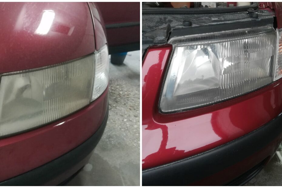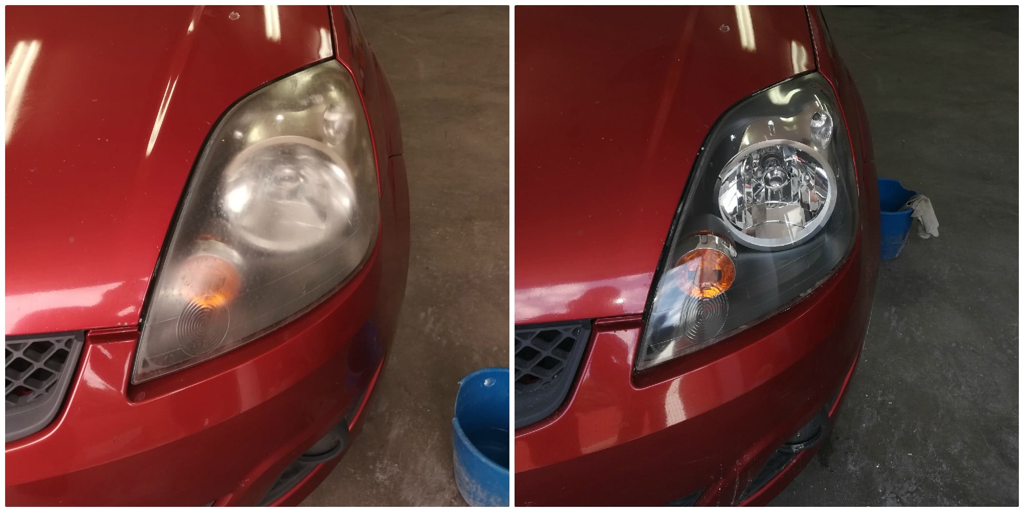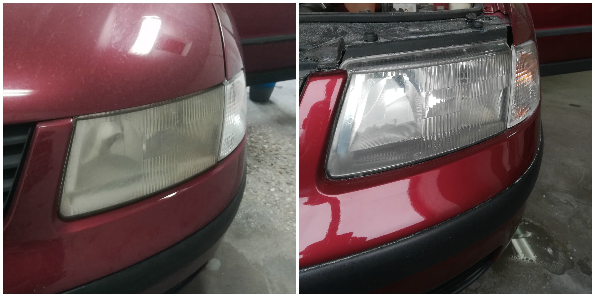 A bemattult, elsárgult fényszóró hatékonysága csökkent. Miután lecsiszoljuk, következik a többlépcsős polírozás folyamata, végül UV védőréteget kap.